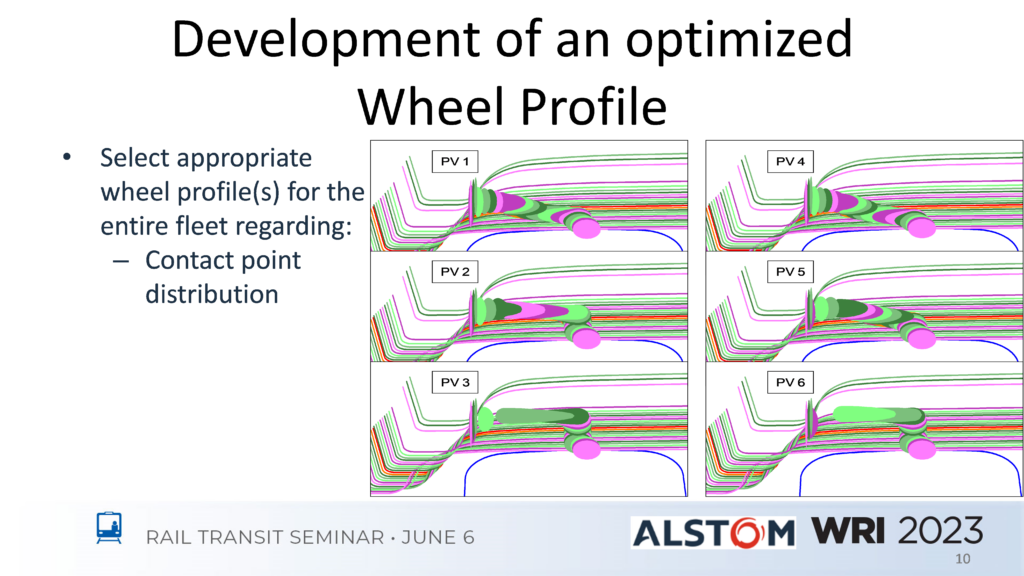 Like Siemens and Stadler, Alstom also uses multibody simulations throughout the profile design process to model wear patterns, potential development of two-point contact, and the propensity for corrugation to develop, Pfeil said. This allows for the testing of multiple profiles with a level of specificity and granularity not possible in the field, he added.