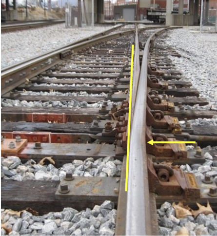 - A worn, broken or gaped point, such that the point provides a climbing surface for the wheel. A new (or like-new) switch point, properly adjusted, will not provide that climbing surface.