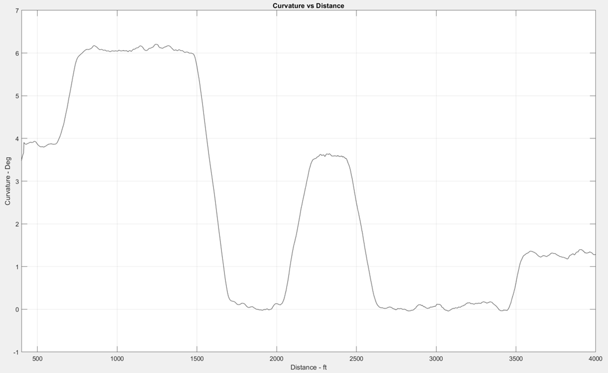 Figure 6 shows a cross reference of all simulation outputs for the site. By aligning the simulations, a clear pattern emerges of potential issues in the 6-degree curve. Not an immediate risk, but perhaps a location to keep an eye on.
